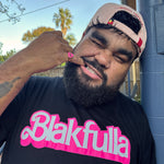 Features hot pink puff logo print on a mid-weight, regular mens sizing tee in soft combed cotton jersey tee.