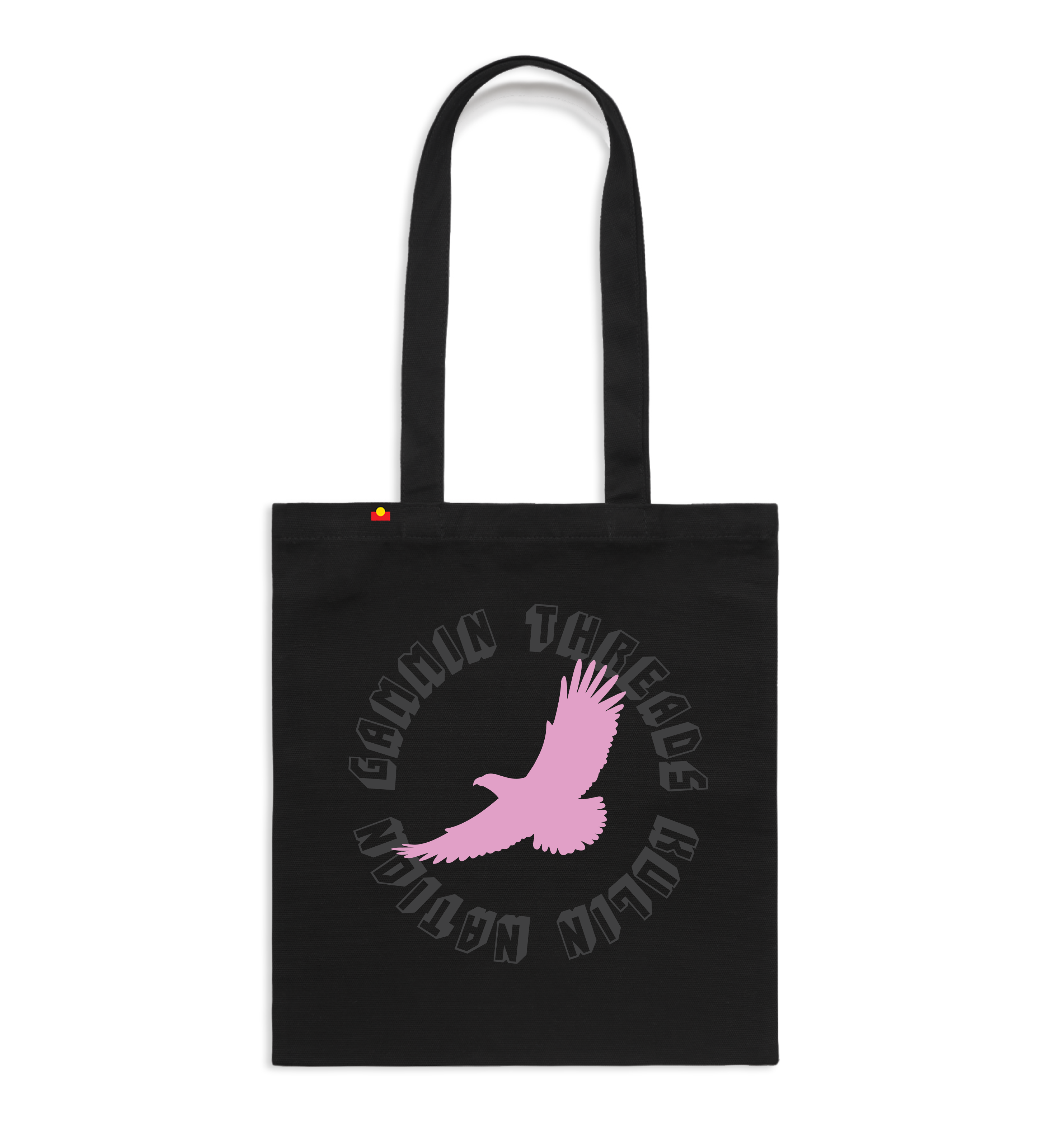 Gammin threads is a proud Kulin Nation brand. One of our totems is Bunjil the eagle. Heavy duty tote bag with screen print and Aboriginal flag pip tag.