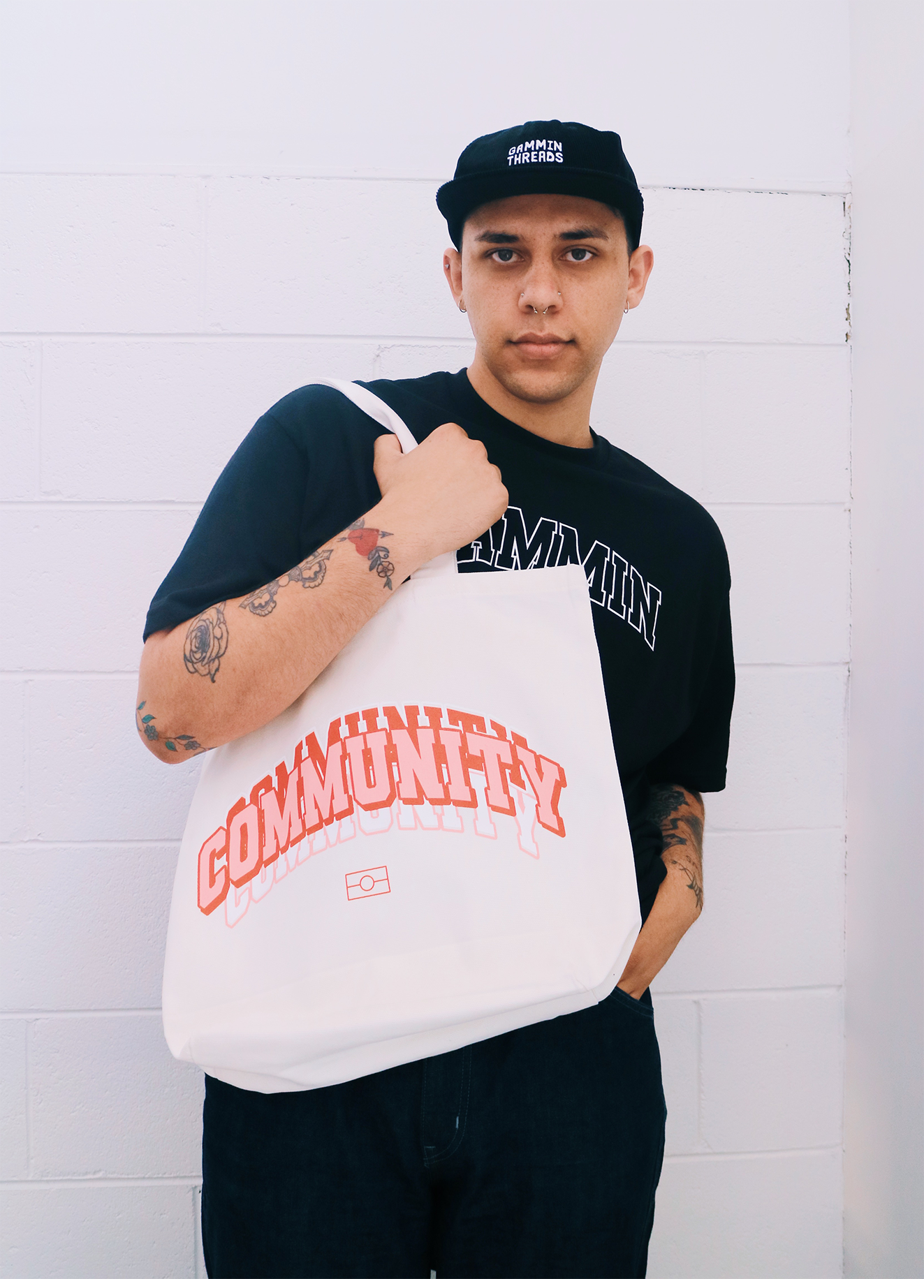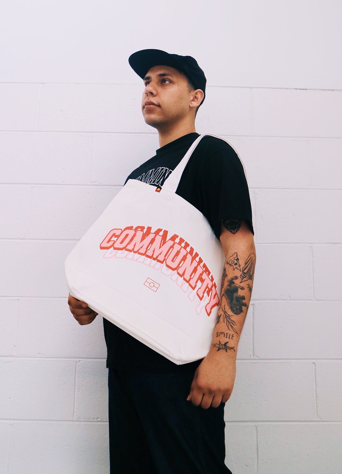 Heavy duty large tote bag with screen print and Aboriginal flag pip tag.