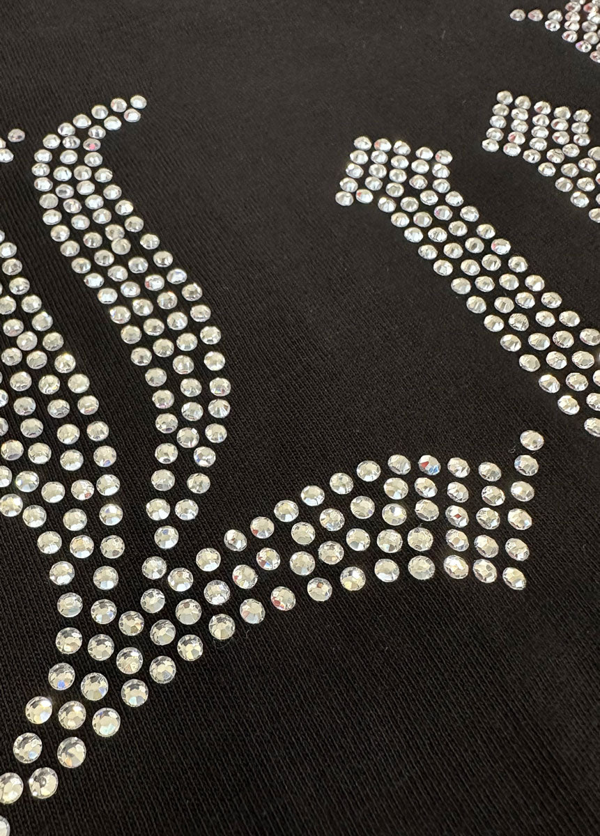 Inspired by the early 2000s juicy couture embellished sets, this lightweight womens crop features Lubly diamante-embellished front, with the Aboriginal flag pip tag on sleeve.