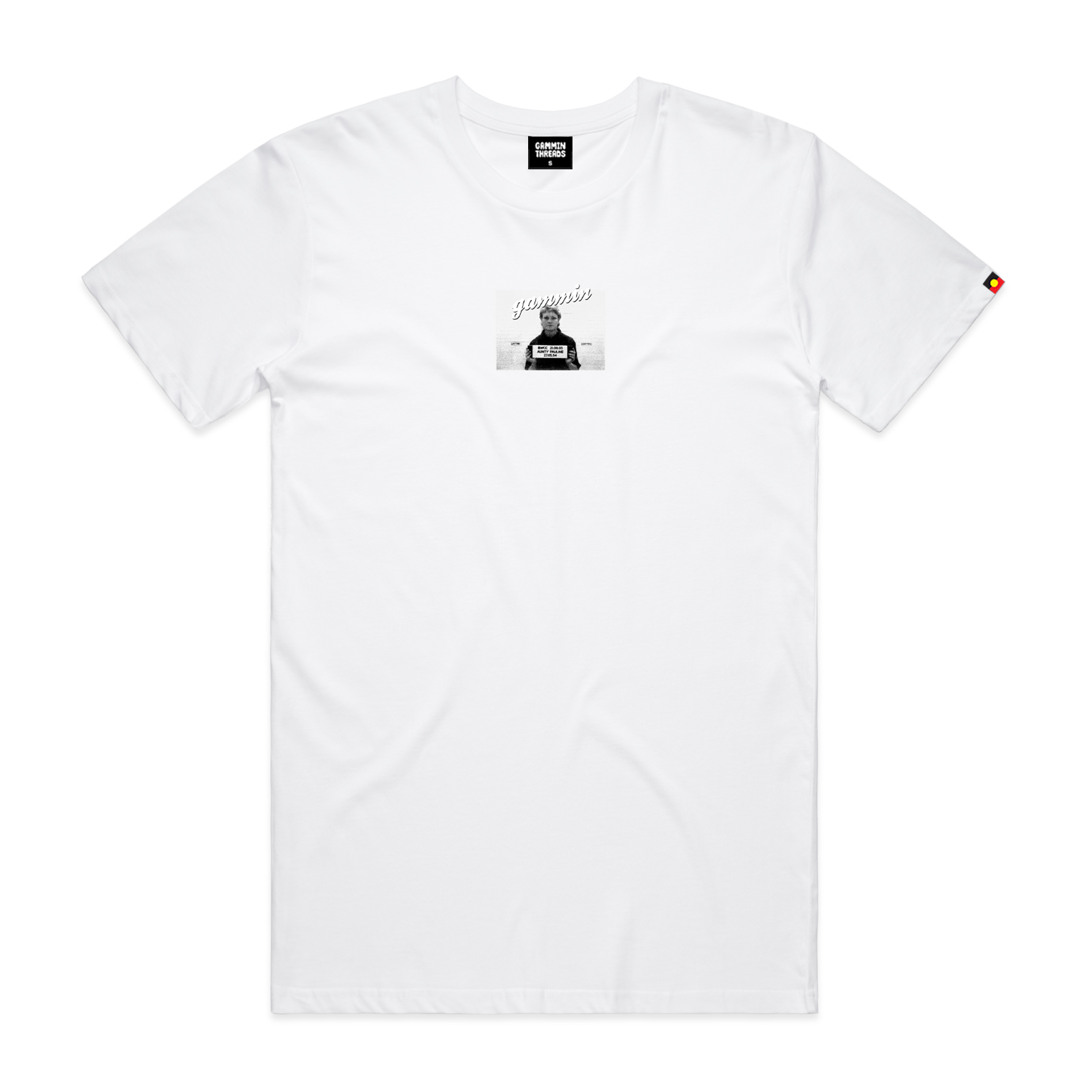 Print of Pauline Hansons 2003 mugshot. Standard mens sizing in soft combed cotton jersey.