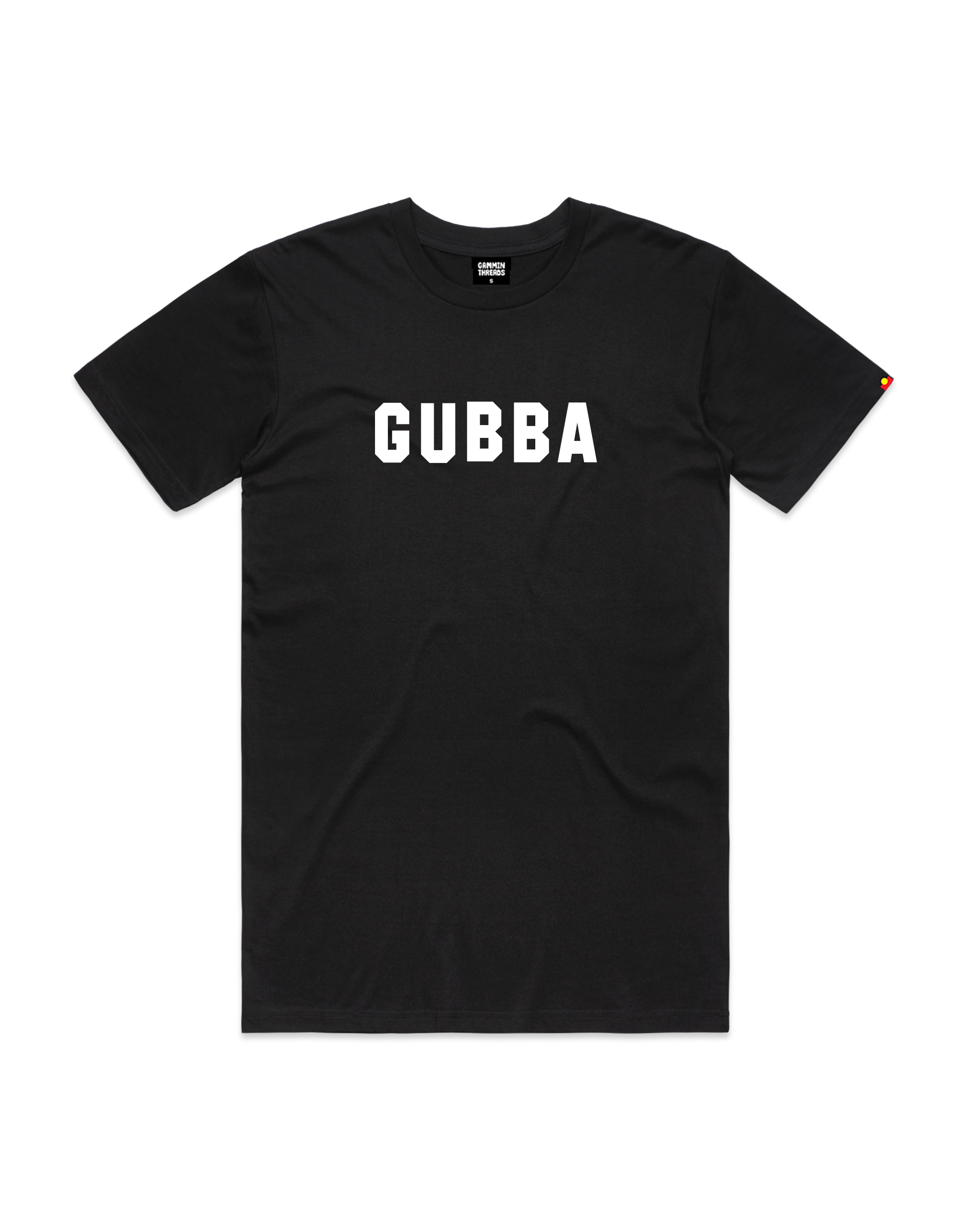 Historically used as a derogatory term, Gubba has been reclaimed here with humour and style. This tee is a way cooler, cheekier way of saying ally.