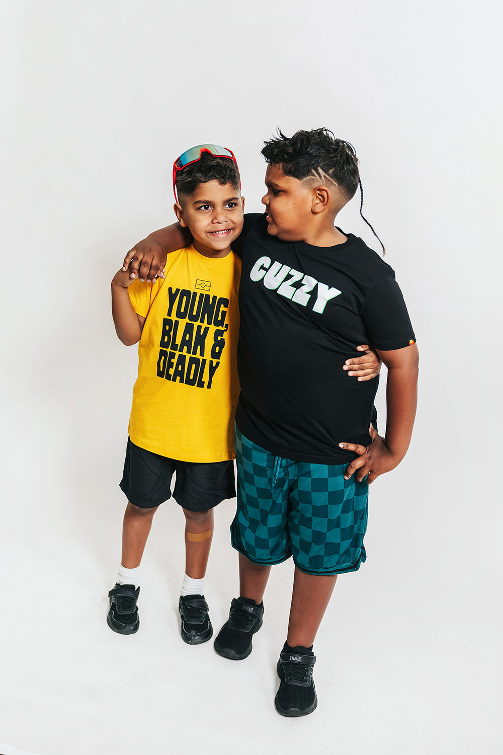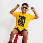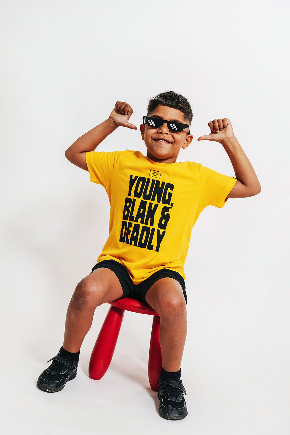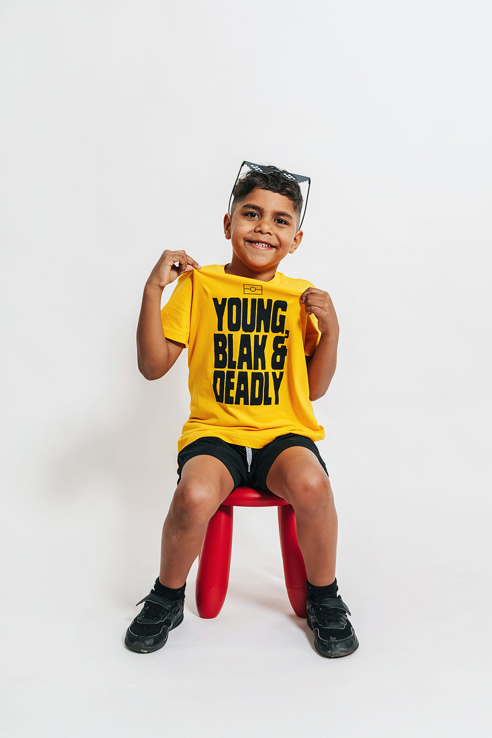Say it loud and proud, our children are our future and the future is looking bright! Screen printed gammin print on a soft combed cotton jersey tee. Standard kids sizing.