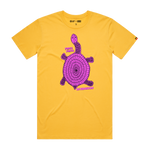 Featuring artwork by artist Ally Knight, this design honours the Yorta Yorta people’s totem Bayadherra (the long neck turtle). “The turtle’s shape is inspired by Kaiela Arts’ popular turtle clay kits that we are well known for. The woven design on the shell reflects my craft practice and weaving business, Mulana Earth.” – Ally Knight